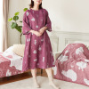 ゆったりロング丈で気になる体形もカバーし、家事などしやすい七分袖仕様。