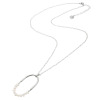 淡水パールとU字のメタルラインを組み合わせたオーバルモティーフのロングネックレスです。
