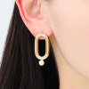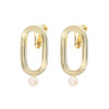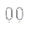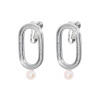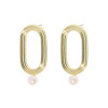 メタル素材のオーバルモティーフに淡水パールをあしらったイヤリング/ピアスです。