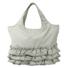 片面だけのフリルなので60代の私でも抵抗なく持てそうです。荷物が増えた時は勿論普段のデイバッグにもいいですね。