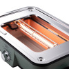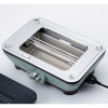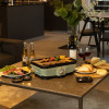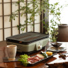 予熱が速く、短時間で備長炭相当の約1,300℃まで高温になるため、ヒーターから出る輻射熱と、温まったプレートによる伝導熱、プレート下の熱気による対流熱のトリプル効果で、食材に余計な熱を与えず、素早くこんがりと、中までふっくら焼き上げます。