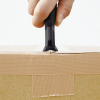 段ボールの大きさに関係なく突き刺してまとめるだけなので片づけの時短にも!グリップは力を入れやすい形状、キャップはスライドロック機能付きで外れにくい仕様です。