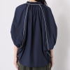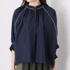 ネックラインにたっぷりとギャザーを入れて、女性らしい華やかさな印象を演出。