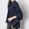 配色のパイピングにより、マニッシュな雰囲気を漂わせます。