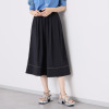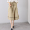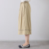 脚のラインを拾いにくいルーズなワイドシルエットながら、裾に広めの切り替えを入れてパイピングを挟み込むことで、ふわりと広がるちょうど良いハリ感を持たせました。