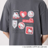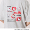 フロントはワッペンのみでシンプル、バックはたくさんのハローキティをプリント。