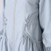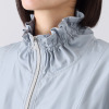 高めのスタンドカラーの上部にゴムひもを通し、絶妙な“カッコかわいい”を表現。