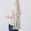後ろ裾はヒップまでカバーする安心感のある着丈ながら、両サイドの深めのスリットにより、ロング&ワイドなボトムスと合わせてもバランス良く着用ができそうです。