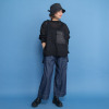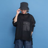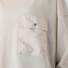胸元のポケットは大きめに設定し、モード感な印象を加えており、また、ポケットを中心寄りに配すことで、身幅が間延びせず、すっきりと見えます。