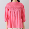 ヨーク切り替えのテープの下にギャザーを入れて、身体のラインを拾いにくいパターンに仕上げました。