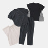 ブラウスとパンツのセットアップが必ず1点入り、ランダムで春夏物アイテムから、パンツ、プルオーバー、スカート、ワンピース、アウターのいずれかが2点入る、計3点セットです。