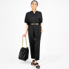ブラウスはバンドカラーにより、抜け感がある、涼しげな首元を演出します。