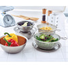 ボウルと一緒に使えば重ねて置いておくことができ、食材の一時保存の際に便利です。