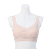 下から着用するタイプで脇やアンダー、背中を広い面で支えるように仕上げ、ワイヤーなしでもしっかりとバストが安定するパターンを開発しており、楽な着用感です。