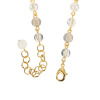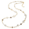 “リゾート”をテーマに、ロッククリスタルクォーツ、カルセドニー、マザーオブパール、ライムストーン、貝パール(シェルビーズにパールコーティング)、シェル、ドイツ製のプラスチックビーズをミックスし、国内でハンドメイドしたロングネックレスです。