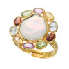 インプレスミー シルバー マルチジェム& 淡水パール フラワーデザイン アジャスタブルリング