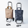 フレームは折りたたみができ、タイヤも取り外しができるので未使用時にはコンパクトに収納可能!スーパーのショッピングカートに引っ掛けることもできます。