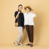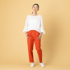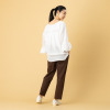 後ろウエスト部分にギャザーをあしらい、ヒップ周りにゆとりを持たせました。