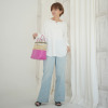 シャツテール風のヘムラインが動くたびに陰影を作り出して、軽やかな雰囲気を醸し出します。