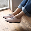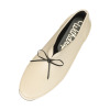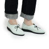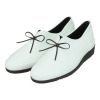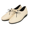 甲高の人でも履きやすいVカットデザインに革ひも風のリボンをあしらいました。