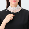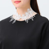 フラワーレースがハイネックのように立ち上がり、その下でフリンジ状のドットレースが広がって揺れる優美なデザインです。