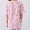 通気性や吸水速乾性に優れた、横方向にストレッチ性のある綿100%のクレープ素材を使用した、五分袖チュニックと八分丈パンツのセットです。