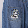 電気ウサギと風のクマの刺しゅうが遊び心を演出。ブラックはツイル生地、ブルーはデニム生地を使用。