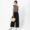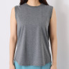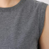 ネックラインとアームホールをリブニットで切り替えて、ダレにくい引き締まった印象を演出。