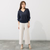 センタープリーツをほどこし、緩やかな中にきちんと感をプラスすることですっきり見えも。