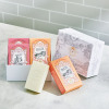 キレイな化粧箱に4個石鹸が入っていますが、その箱を大きな丸い透明シールで止めてあるのが少し残念。箱も別用途で使いたかったので剥がれにくいシールはやめて欲しいです。