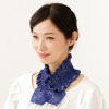 首に巻いて先端を穴に通すだけのかんたん着脱で、伸縮するため首まわりにフィットします。