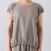 袖口のギャザーデザインを生かしつつ、バスト部分が大きく見えないようすっきり見えるようパターンを調整しました。