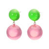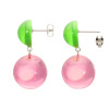 耳に近い部分は透明感とマット感が組み合わさったグリーンのパーツ、下がり部分は上品な淡いピンクのパーツを配したバイカラー仕立て。