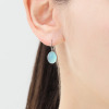 水を思わせる美しいブルーに染めたアクアカルセドニー(当ブランド呼称)は、両耳で4.8カラットUPの程良いサイズ感。