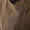 襟が左右でやや異なるデザイン性の高い仕上がりで、大きめの両サイドポケットがデザインのアクセントに。