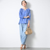 柔らかなデニム素材を使用。膝あたりにダーツ処理をほどこし、はきやすさと立体感にこだわった一本。