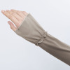 フリル風の袖口で親指と小指を通して着用するタイプなので、UV対策をうっかり忘れがちな手の甲までしっかりカバー。