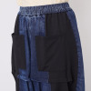 膝にはタックが入っていて、デザインもそうですが、ストーンウォッシュ加工をほどこされていてデニムとジャージー部分との対照的な組み合わせが個性的でカッコいいです。デニム好きな息子が大のお気に入りになったようで、喜んで履いてます。こんなデザイン見たことないです。