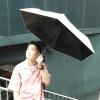 生地の裏面に折り目に沿って配置した特殊なフィルムパネルがたたむ動作をアシストし、バンドを持ってくるっと回して巻くことで、美しくたためます。