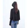 フードには髪を通せる穴付きなのでロングヘアでも快適。