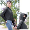 ブラック約97%、グレー約98%大きなツバ付きのフード、あごまで覆うフロントジッパー付きで顔周りを直射日光から守ってくれます。