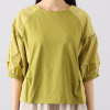 袖は肩幅がすっきり見えるラグランスリーブに、膨らみを持たせたフォルムでトレンド感をアップ。