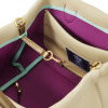 開口部の両サイドにDカンを付けており、お手持ちのストラップを繋げれば肩掛けや斜め掛けでも使用可能。