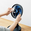 風量は3段階調節可能で、リズム運転、自動首振り運転など、これまでのリビングファンの機能はそのままに、小さく折りたたんで、棚やちょっとした隙間に収納でき、場所を取りません。