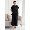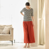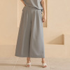 生地のドレープ性を活かしたシルエットでトレンド感のある一本。体形を拾いにくいフォルムで楽なはき心地。