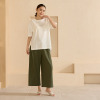 丈感は足元から空気が抜けていくクロップト丈で、暑い日も快適に過ごせそう。