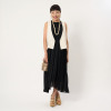 深めのVラインがすっきりと見せ、装いを華やかに演出。