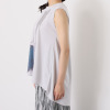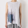 右身頃に配した当ブランドオリジナルデザインの線描きとペイント風のグラデーションプリントが、涼しげでモードな雰囲気を演出。