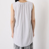 身体のラインを拾いにくいゆとりのあるシルエットながら、肩からアームホールにかけてコンパクトに仕上げることによって、細見え効果が期待できるつくりに。