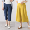 ここ数年はワイド系パンツばかり履いているので、今回もキレイなイエローのガウチョパンツ目当てで買いましたが、クロップドパンツは想像以上に脚のラインを拾わず、私の太い脚をまっすぐキレイに見せてくれる気がします。二枚ともこの夏活躍してくれそうで、購入して良かったです。